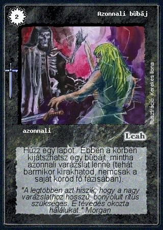 Kiadás: Hőskorszak Gyakoriság: gyakori Lapszín (isten): Leah Típus: azonnali Szöveg: Húzz egy lapot. Ebben a körben kijátszhatsz egy bűbájt, mintha azonnali varázslat lenne (tehát bármikor kirakhatod, nemcsak a saját köröd fő fázisában). Szinesítő szöveg: "A legtöbben azt hiszik, hogy a nagy varázslathoz hosszú, bonyolult rítus szükséges. E tévedés okozta halálukat." Morgan Illusztráció: Kerekes Ilona
