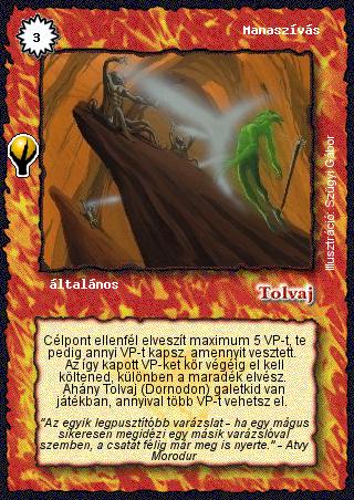 Szinesítő szöveg: "Az egyik legpusztítóbb varázslat - ha egy mágus sikeresen megidézi egy másik varázslóval szemben, a csatát félig már meg is nyerte." - Atvy Morodur