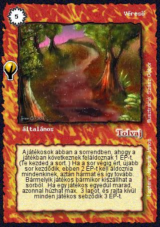 Kiadás: Alappakli, 5. kiadás (Ősök városa) Gyakoriság: ritka Lapszín (isten): Tolvaj Klán Típus: általános Szöveg: A játékosok abban a sorrendben, ahogy a játékban következnek feláldoznak 1 ÉP-t. (Te kezded a sort. ) Ha a sor végig ért, újabb sor kezdődik, ebben 2 ÉP-t kell áldoznia mindenkinek, aztán hármat és így tovább. Bármelyik játékos bármikor kiszállhat a sorból. Ha egy játékos egyedül marad, azonnal húzhat max. 3 lapot, és rajta kívül minden játékos sebződik 3 ÉP-t. Illusztráció: Szász Gábor Tervező: Jancsár János