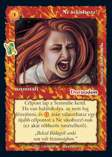 Szöveg: Célpont lap a Semmibe kerül. Ha van halálsikolya, az nem fog létrejönni, és (1) árán választhatsz egy újabb célpontot a Ne sikoltozz!-nak (ez akár többször ismételhető).