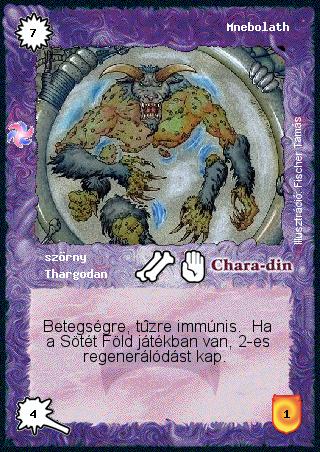 Szöveg: Betegségre, tűzre immúnis. Ha a Sötét Föld játékban van, 2-es regenerálódást kap.