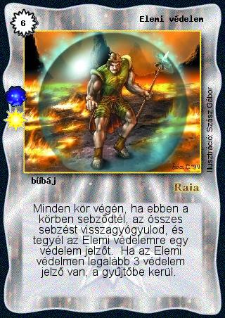 Kiadás: Mágia létsíkja (Invázió) Gyakoriság: ritka Lapszín (isten): Raia Típus: bűbáj Szöveg: Minden kör végén, ha ebben a körben sebződtél, az összes sebzést visszagyógyulod, és tegyél az Elemi védelemre egy védelem jelzőt. Ha az Elemi védelmen legalább 3 védelem jelző van, a gyűjtőbe kerül. Illusztráció: Szász Gábor