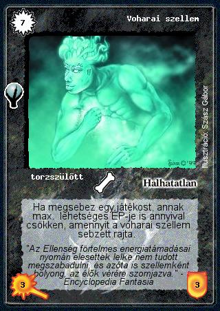 Szöveg: Ha megsebez egy játékost, annak max. lehetséges ÉP-je is annyival csökken, amennyit a voharai szellem sebzett rajta.