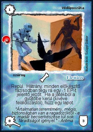 Szöveg: Repül. Hátrány: minden előkészítő fázisodban tégy rá egy -1 ÉP-t jelentő jelzőt. Ha a játékból a gyűjtőbe kerül (kivéve feláldozástól), húzz egy lapot.