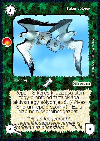Szöveg: Repül. Sikeres kijátszása után tégy ellenfeled tartalékjába aktívan egy sólyomjelzőt (4/4-es Sheran repülő szörny). Ez a jelző nem cserélhet gazdát.