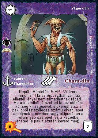 Szöveg: Repül. Büntetés: 5 ÉP. Villámra immúnis. Ha az őrposztban van, az ellenfél lényei nem támadhatnak téged. Ha a kezedből játszottad ki, az idézési költség kifizetésével, előkereshetsz a paklidból tetszőleges számú olyan lapot, amelynek a nevében vagy altípusában a villám szó szerepel, és a kezedbe veheted (a paklit ezután keverd meg).