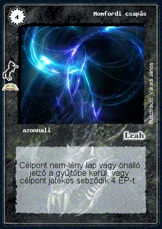 Szöveg: Célpont nem-lény lap vagy önálló jelző a gyűjtőbe kerül, vagy célpont játékos sebződik 4 ÉP-t.