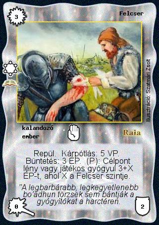 Szöveg: Repül. Kárpótlás: 5 VP. Büntetés: 3 ÉP. (P): Célpont lény vagy játékos gyógyul 3+X ÉP-t, ahol X a Felcser szintje.