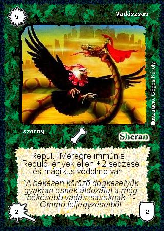 Szöveg: Repül. Méregre immúnis. Repülő lények ellen +2 sebzése és mágikus védelme van.