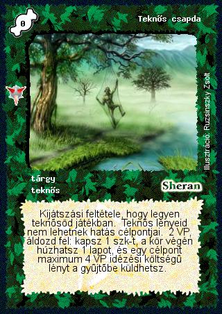 Szöveg: Kijátszási feltétele, hogy legyen teknősöd játékban. Teknős lényeid nem lehetnek hatás célpontjai. 2 VP, áldozd fel: kapsz 1 szk-t, a kör végén húzhatsz 1 lapot, és egy célpont maximum 4 VP idézési költségű lényt a gyűjtőbe küldhetsz.