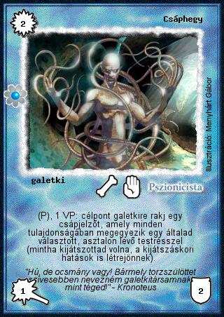 Szinesítő szöveg: "Hú, de ocsmány vagy! Bármely torzszülöttet szívesebben nevezném galetkitársamnak, mint téged!" - Kronoteus