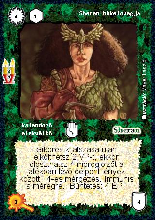 Szöveg: Sikeres kijátszása után elkölthetsz 2 VP-t, ekkor eloszthatsz 4 méregjelzőt a játékban lévő célpont lények között. 4-es mérgezés. Immunis a méregre. Büntetés: 4 ÉP.