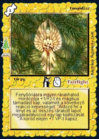 Szöveg: Fenyőóriásra ingyen rárakhatod. Hordozója +1/+2-t és mágikus támadást kap, valamint a következő reakció képességet: "Áldozd fel a lényt és az összes rárakott lapot: megakadályozod egy lap kijátszását. " A köröd elején +1 VP-t kapsz.