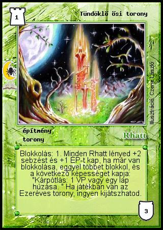 Szöveg: Blokkolás: 1. Minden Rhatt lényed +2 sebzést és +1 ÉP-t kap, ha már van blokkolása, eggyel többet blokkol, és a következő képességet kapja: "Kárpótlás: 1 VP vagy egy lap húzása. " Ha játékban van az Ezeréves torony, ingyen kijátszhatod.