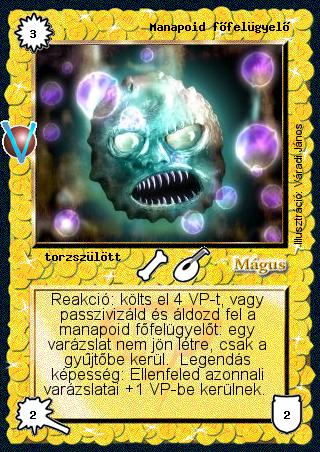 Szöveg: Reakció: költs el 4 VP-t, vagy passzivizáld és áldozd fel a manapoid főfelügyelőt: egy varázslat nem jön létre, csak a gyűjtőbe kerül. Legendás képesség: Ellenfeled azonnali varázslatai +1 VP-be kerülnek.