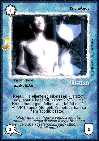 Szöveg: Repül. Ha ellenfeled sikeresen kijátszott egy lapot a kezéből, kapsz 2 VP-t. Ha Kronoteus a gyűjtődben van, köröd elején +1 VP-t kapsz (de több Kronoteus hatása nem adódik össze).