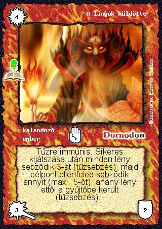 Szöveg: Tűzre immúnis. Sikeres kijátszása után minden lény sebződik 3-at (tűzsebzés), majd célpont ellenfeled sebződik annyit (max. 5-öt), ahány lény ettől a gyűjtőbe került (tűzsebzés).