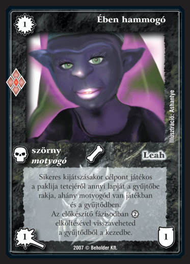 Szöveg: Sikeres kijátszásakor célpont játékos a paklija tetejéről annyi lapját a gyűjtőbe rakja, ahány motyogód van játékban és a gyűjtődben. Az előkészítő fázisodban 2_VP elköltésével visszaveheted a gyűjtődből a kezedbe.