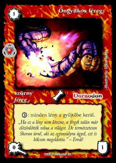 Szinesítő szöveg: "Ha ez a lény nem létezne, a férgek talán már elözönlötték volna a világot. De természetesen Sheran úrnő, aki az egyensúlyra ügyel, ezt is bölcsen megoldotta." - Ervdő