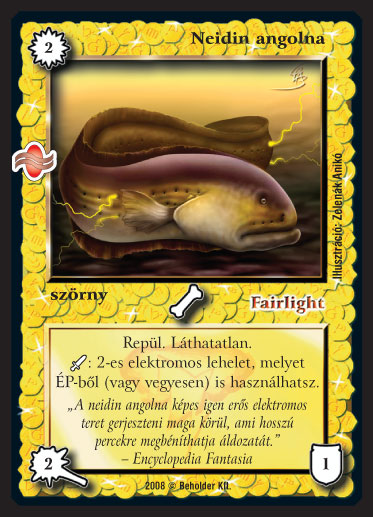 Szinesítő szöveg: "A neidin angolna képes igen er?s elektromos teret gerjeszteni maga körül, ami hosszú percekre megbéníthatja áldozatát." - Encyclopedia Fantasia