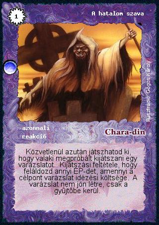 Szöveg: Közvetlenül azután játszhatod ki, hogy valaki megpróbált kijátszani egy varázslatot. Kijátszási feltétele, hogy feláldozd annyi ÉP-det, amennyi a célpont varázslat idézési költsége. A varázslat nem jön létre, csak a gyűjtőbe kerül.