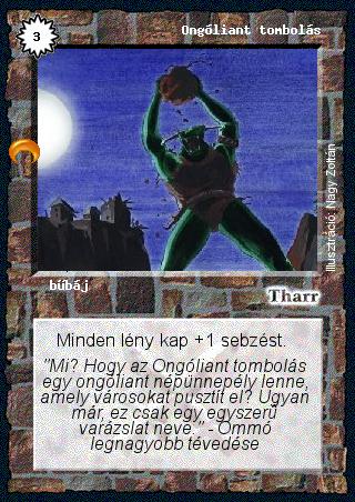 Szinesítő szöveg: "Mi? Hogy az Ongóliant tombolás egy ongóliant népünnepély lenne, amely városokat pusztít el? Ugyan már, ez csak egy egyszerű varázslat neve." - Ommó legnagyobb tévedése