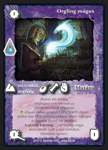 Szöveg: Aktívan jön játékba. Orglingjaid nem lehetnek az ellenfél forrásának célpontjai. (P): célpont játékos gyógyul 5 ÉP-t, VAGY célpont játékos max ÉP-je annyival csökken, ahány orglingod és legendás lényed van játékban. Legendás képesség: [1]: az Orgling mágus aktivizálódik (csak a saját körödben, körönként egyszer).