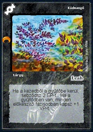 Szöveg: Ha a kezedből a gyűjtőbe kerül, sebződsz 2 ÉP-t. Ha a gyűjtődben van, minden előkészítő fázisodban kapsz +1 VP-t.