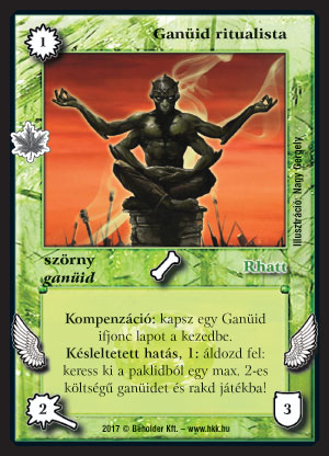 Szöveg: Kompenzáció: kapsz egy Ganüid ifjonc lapot a kezedbe. Késleltetett hatás, 1: áldozd fel: keress ki a paklidból egy max. 2-es költségű ganüidet és rakd játékba!