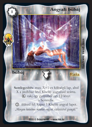 Szöveg: Semlegesítés: max. X+1-es költségű lap, ahol X a játékban lévő Kisebb angyalaid száma. (K): rakj egy gyűjtőből egy _élőholt lényt a Semmibe. 1_VP, áldozd fel: kapsz 1 Kisebb angyal lapot.